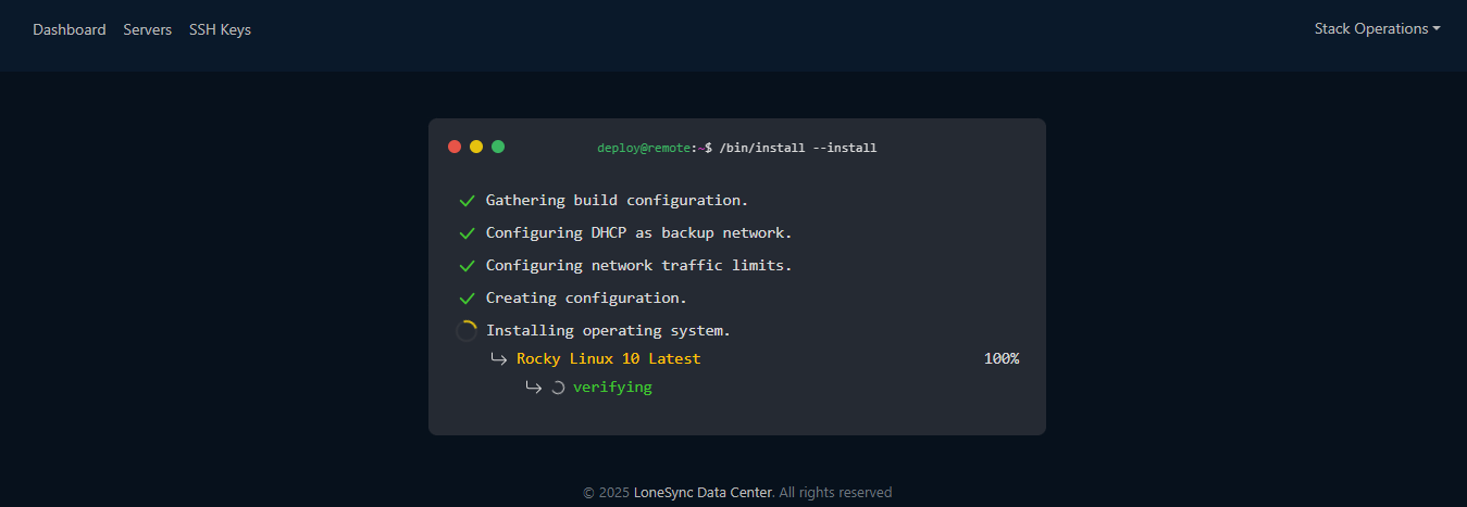 LoneSync installs your chosen OS automatically, with real-time visual overview of the status.