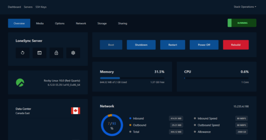LoneSync provides an integrated dashboard to provision and manage your Virtual Private Server.
